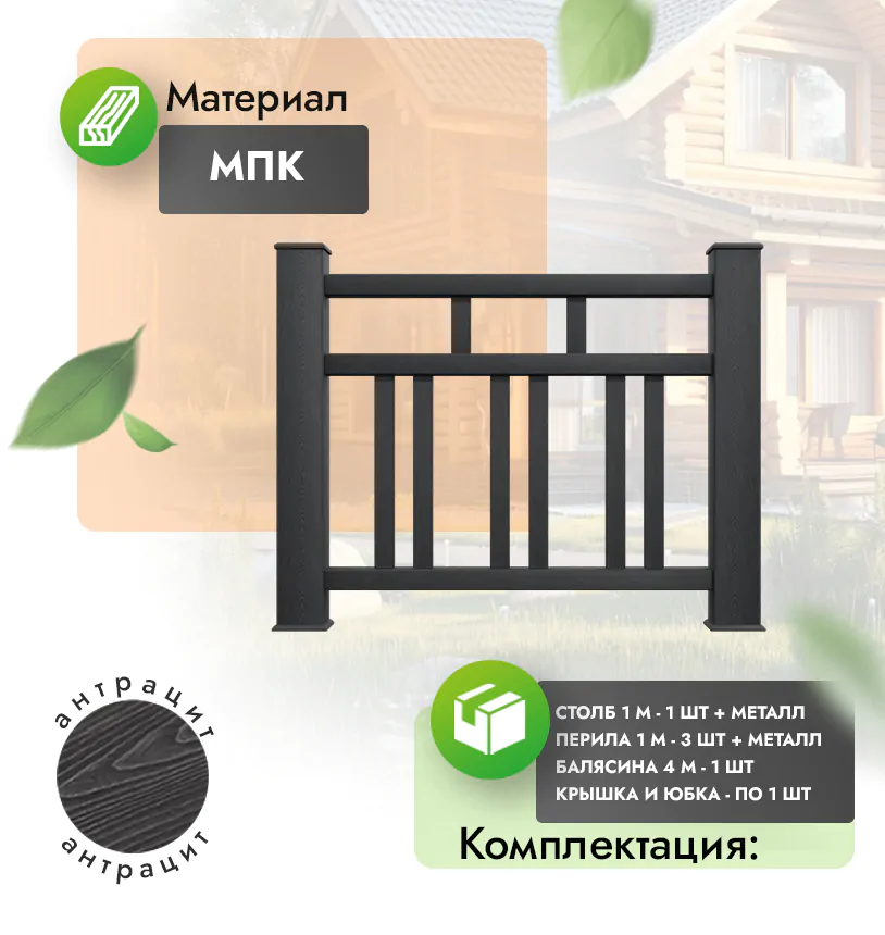 Срок службы ограждений и изделий из ДПК не менее 15 лет. В течение 3 лет гарантия: вернем деньги или заменим товар.