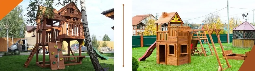 Отдельный домик для игр, который построен с учетом увлечений и интересов ребенка, станет любимым развлечением. Детские психологи отмечают, что подобные строения становятся не только востребованной игровой площадкой, но и личной территорией, где малыш учится быть самостоятельным. Проект детского домика разрабатывается в зависимости от количества детей, которые будут им пользоваться, их возраста, интересов. Особой популярностью пользуются двухэтажные конструкции, в которых наверху располагается комната. А внизу можно устроить песочницу с сиденьями для малышей или лестницы, канаты, кольца для ребят постарше. Для такой конструкции строители рекомендуют приобрести ступени из ДПК для лестницы WOODGRAND. Даже на влажной поверхности ребенок не поскользнется. Это существенно снижает травмоопасность детской площадки.